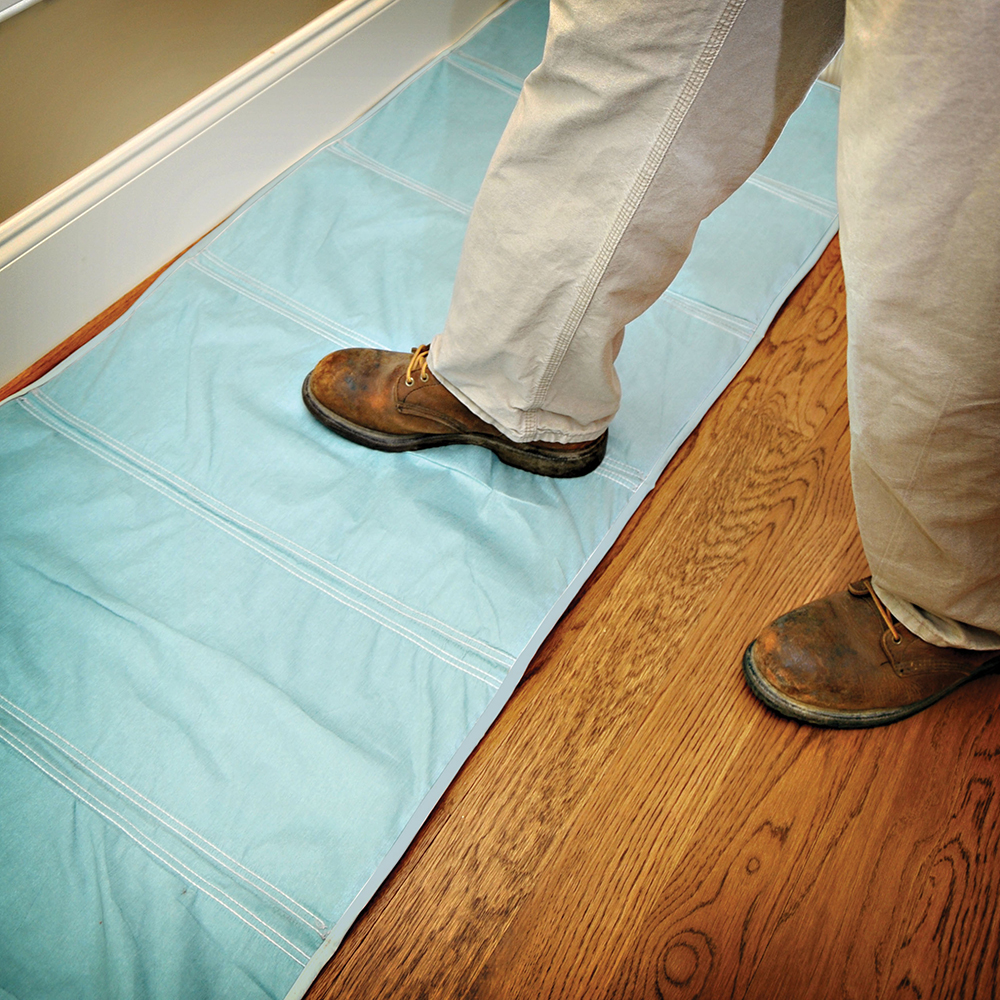 Trimaco’s Quick Drop is a folding mat drop cloth that is easy-to-handle and maneuver. Simply drop, kick into place and start painting! Made of coated fabric, Quick Drop is leak resistant to paints, stains, solvents and more. Designed with a absorbent blue fabric to prevent tracking, this folding drop cloth is a must for any paint job. Perfect for touch ups, punch lists and smaller projects, the Quick Drop fits in hard to reach spaces and works great on counter-tops, carpet, hardwoods, vinyl and tile floors. Use time and time again simply folding in between jobs for easy storage.