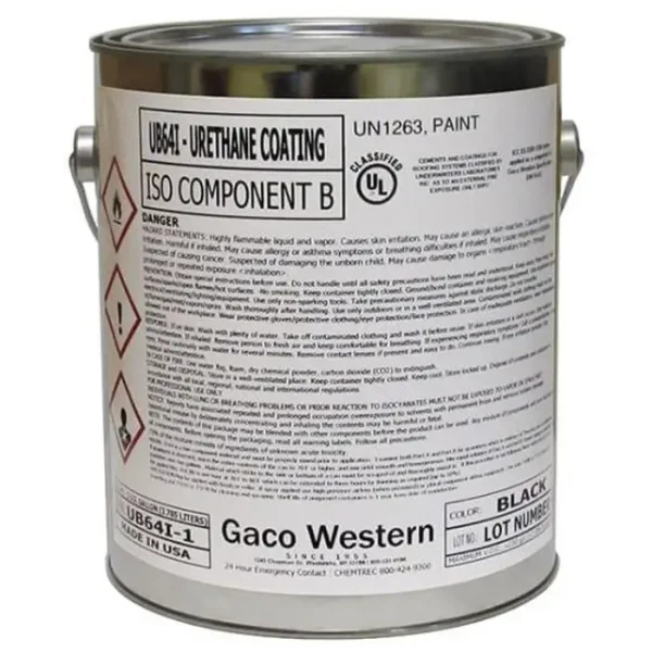 GacoFlex UB64C liquid polyurethane is a hydrolytically stable, fire retarded, two‐component elastomer. It is for use as a base coat on roofs, mechanical room floors, walking decks and traffic decks where polyurethane coating systems require fire retardance, toughness, fast cure and good solvent resistance. Suitable substrates include plywood, polyurethane foam, properly primed concrete and metal.Marca y modelo