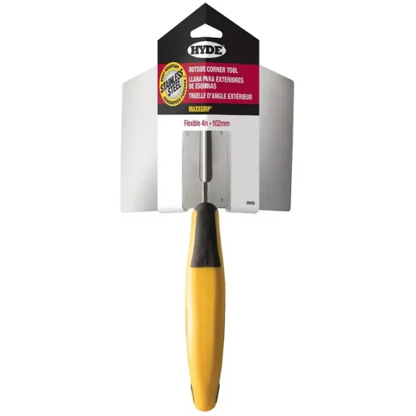 The MAXXGRIP Outside Corner Tool is specifically designed to achieve smooth and defined outside corner joints in drywall taping and patching projects. This tool features extra-wide 4″ flexible stainless steel blades set at an 83º angle, optimized to flex tightly around 90º corners. The lightweight, offset handle equipped with a non-slip grip enhances control and comfort, making it ideal for professional use.