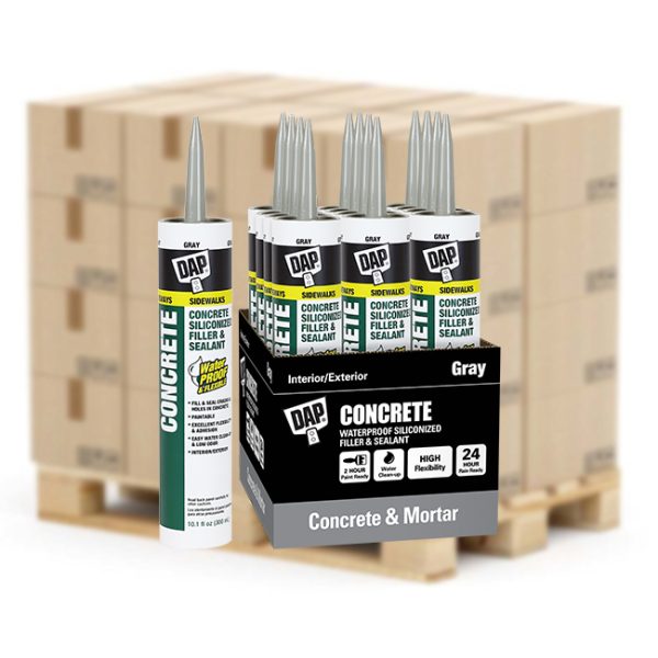 DAP CONCRETE & MORTAR FILLER & SEALANT is a ready-to-use, waterproof sealant formulated to repair cracks and holes in concrete, mortar and masonry surfaces. It contains silicone additives for improved adhesion, flexibility and water resistance. It forms a durable, 100% waterproof and weatherproof seal. Resists gas, oil, grease and salt. Paintable. Easy to apply, low in odor and water clean-up. VOC compliant. Interior/exterior use.