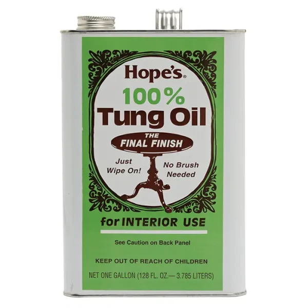 For a Hand Rubbed Low Gloss Finish: Tung oil is an exotic, naturally drying oil imported from South America and China. It is recognized by craftsmen to be the ultimate drying oil for all fine woods, furniture and antiques. Unlike other finishes that sit on the wood’s surface, Tung oil penetrates deep into wood fibers, cures, and actually becomes part of the wood. It forms a low gloss hand rubbed finish that’s not only beautiful, but remarkably durable. Resistance to moisture and alcoholic drinks is truly amazing!