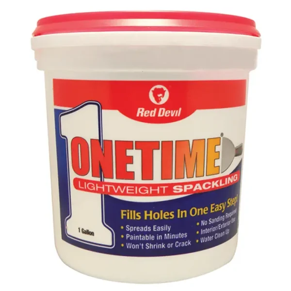 Onetime Lightweight Spackling Compound is a premium formulation designed from an advanced emulsion blend. Product contains no asbestos, may be used inside or out & offers water clean up. Formulation is designed not to crack or shrink & is VOC Compliant & paintable.