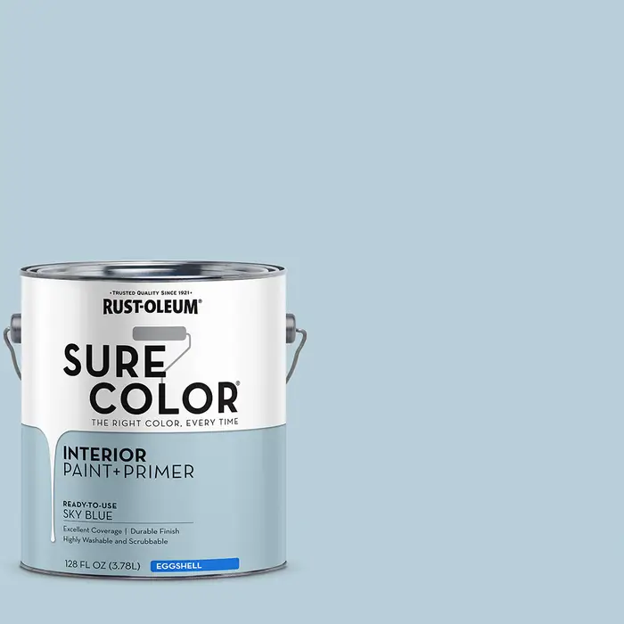 Sure Color paint and primer in one comes in pre‐mixed colors, saving you time and money on your interior paint project. The ready‐to‐use gallons make it easy to refresh any space in your choice of timeless neutrals or on‐trend colors. Sure Color Interior Wall Paint can be used on drywall, wood, aluminum, steel and brick surfaces. Eggshell paint has a low‐luster finish, making this the most popular sheen for all living spaces. Recommended for bedrooms, dining rooms and living rooms.