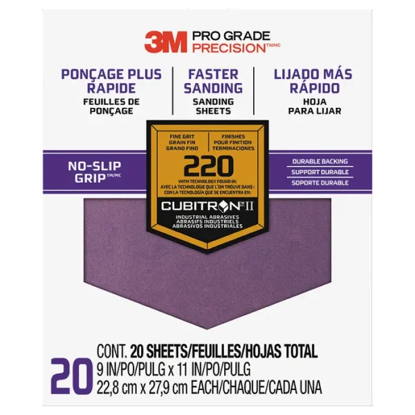3M PRO GRADE PRECISION Faster Sanding Sheets with enhanced mineral technology resist clogging and sand faster. Fold once and the NO-SLIP GRIP durable backing grips together to prevent slipping so you can sand longer with less hand fatigue. Superior cut durability from start to finish. For when endurance matters.