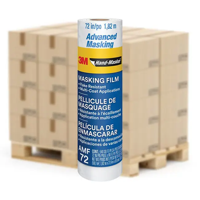 3M Hand-Masker Pre-Folded Masking Film is pre-folded polyethylene film used for surface protection and dust containment during for multi-coat paint, lacquers and industrial coating applications. The film is treated to resist overspray flaking during multiple coat applications. This translucent film allows significant light transmission and static cling for easy handling during windy conditions or when using spray equipment. Available in a variety of sizes, 3M Hand-Masker Pre-Folded Masking Film is designed for use with 3M Hand-Masker dispensers and with Scotch Masking and Scotch-Blue Painter’s Tapes. 72 Inch W x 90 ft L x 0.4 mil T