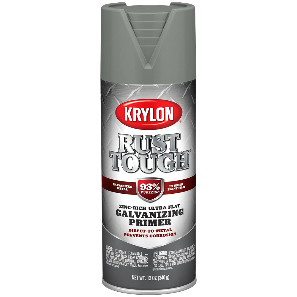 12 Oz Krylon K09240008 Gray Rust Tough Solvent Based Anti-Rust Technology Zinc-Rich Galvanizing Primer Spray Paint, Ultra Flat