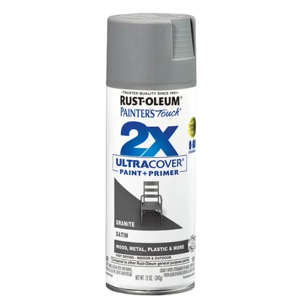 With the breakthrough Double Coverage Technology of Painter’s Touch 2X Ultra Cover Spray paint, your project could be done twice as fast with two times the coverage*. This lets you get the job done faster so you can enjoy it sooner. With indoor and outdoor durability, you can rest assure your project will last. The satin finish is available in a large variety of on-trend colors.