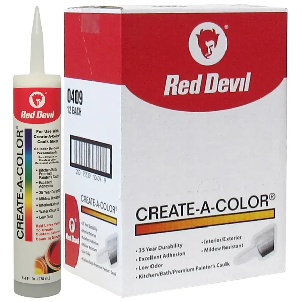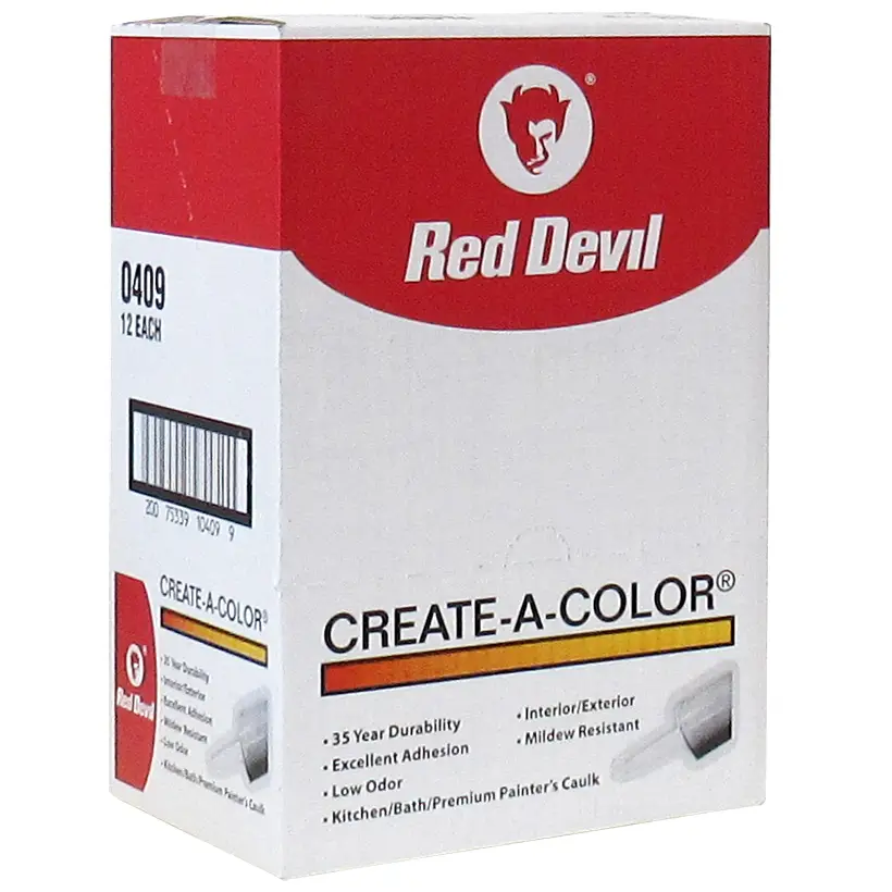 Specially formulated to be tinted using a Create-A-Color Caulk mixer, this superior quality sealant offers excellent adhesion to most surfaces. It provides a watertight, long-lasting, mildew-resistant seal that cures to an ultra-smooth satin finish. It can be used on interior and exterior surfaces, odorless and cleans up with soap and water. Use any latex paint to tint. Create-A-Color® Caulk, 10.1 oz Cartridge, White, Paste