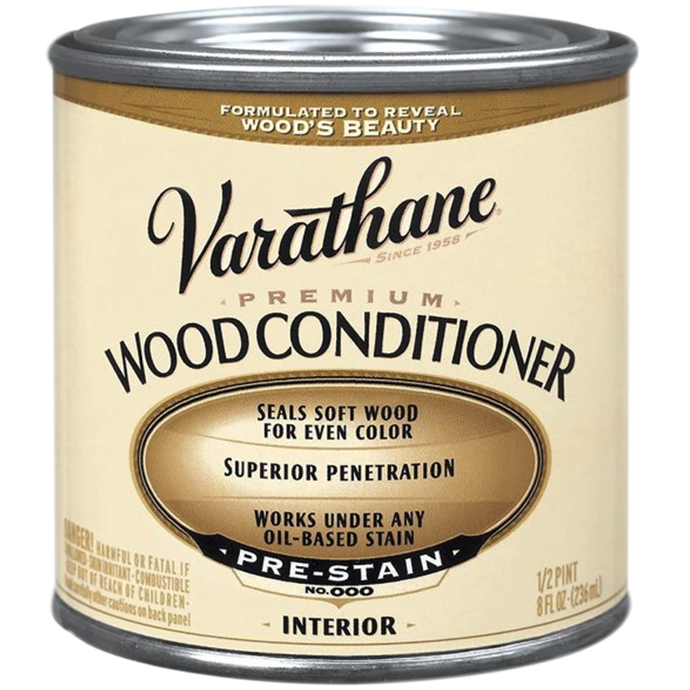 Prep soft or porous woods for a stunning stain job with Rust-Oleum Varathane Premium Wood Conditioner. This proprietary, soya-oil-based formula penetrates deeply, sealing the wood and enabling it to achieve a deeper, richer tone. Prevents splotchy color.
