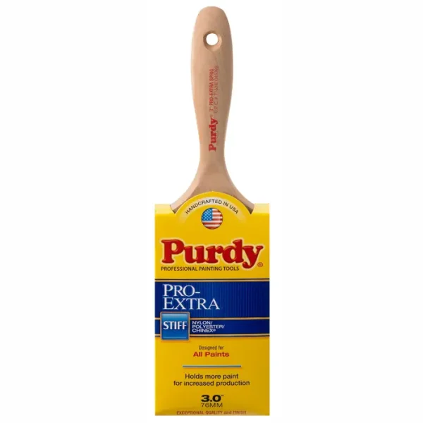 Purdy Pro‐Extra paintbrushes hold more paint so you can get the job done faster. This painting tool is perfect for high production with latex paints and primers. With stiff bristles made of nylon, polyester and Chinex‐blended filaments, these brushes are designed for abrasive surfaces — both indoors and outdoors. Handcrafted in the USA with high‐quality global materials. Ideal for drywall, siding board, brick and concrete block.