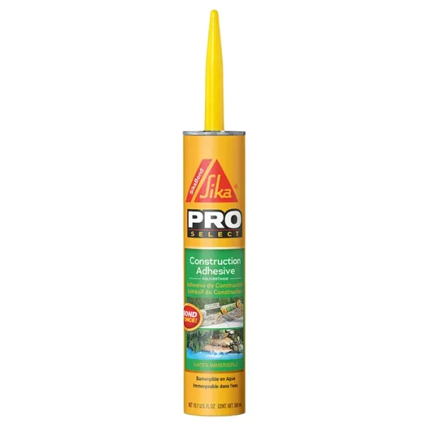 SikaBond Construction Adhesive is a one-component, durable and flexible exterior polyurethane adhesive. It has excellent adhesion on all cement-based materials, brick, ceramics, glass, metals, and wood.