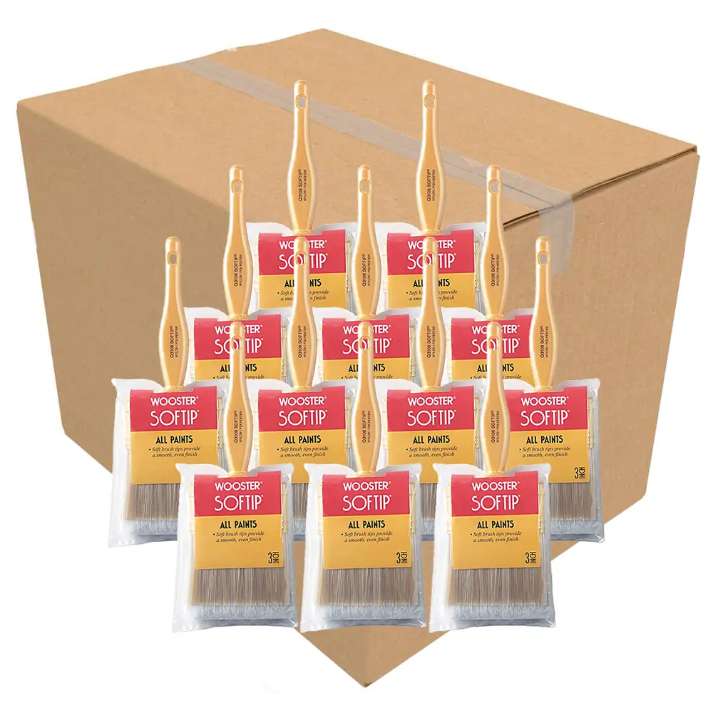 No other brush paints smoother and faster at this price point! Wooster Softip features fine, feather‐like filament ends that reduce brushmarks. The famous, short, pearl‐yellow handle offers comfort and control as well as shelf appeal. Softip provides good results in all paints, latex and oil‐based.