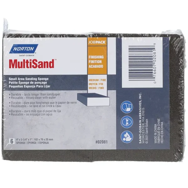 150‐Pack of 4” x 2‐3/4” Norton 02081 MultiSand Double Sided Small Area Sanding Sponge Fine/Medium, 6‐Pack