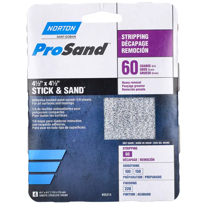 150‐Pack of 4‐1/2” x 4‐1/2” Norton 05314 ProSand Stick & Sand Sanding Sheet 60‐Grit Handy‐Pack