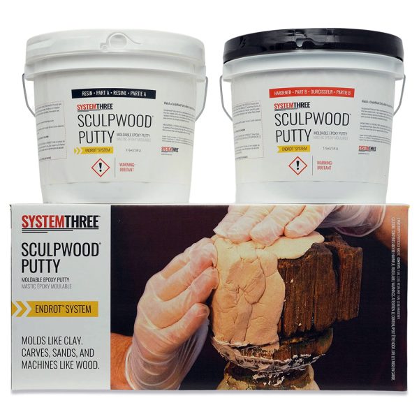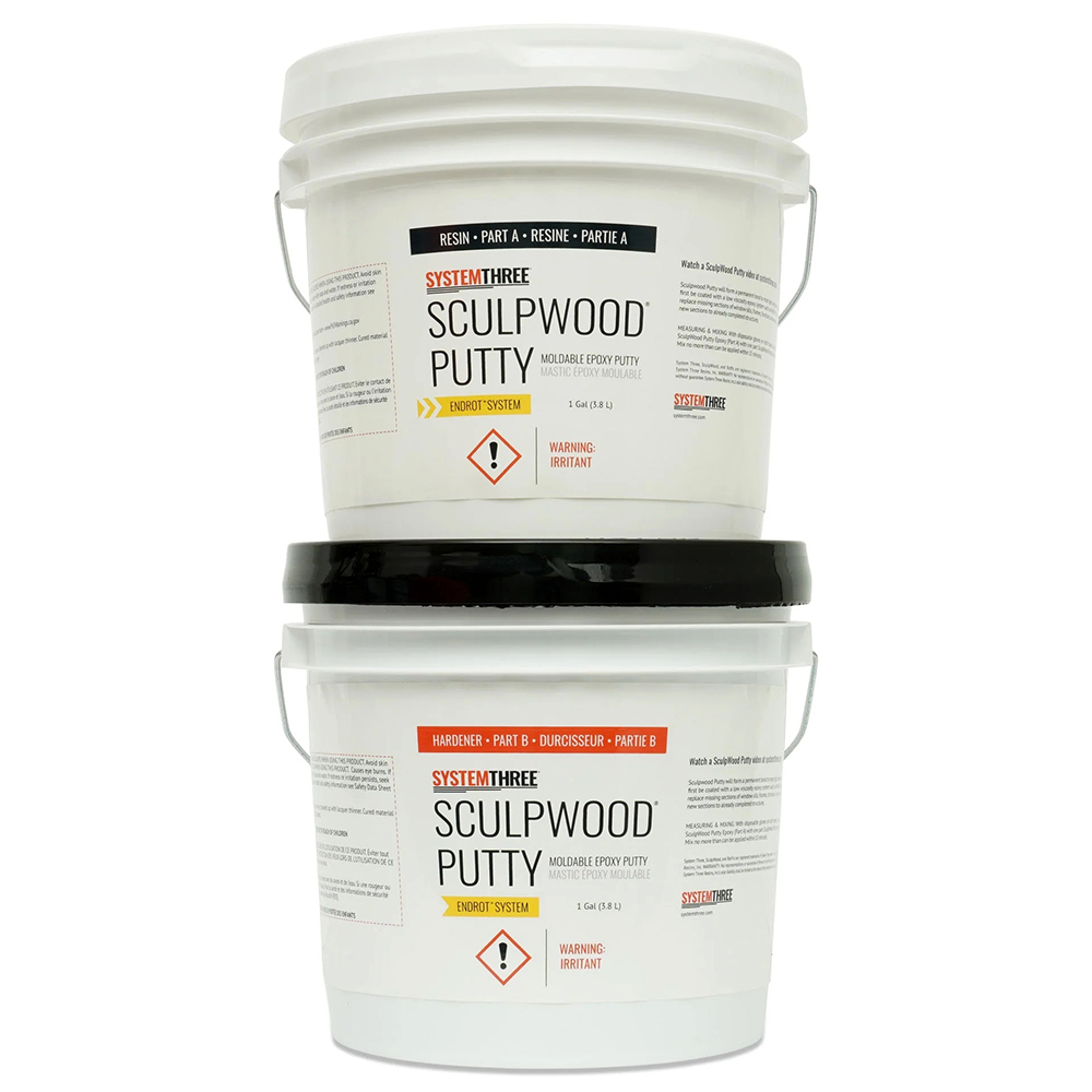 SculpWood Putty is a one of four components making up the EndRot system. It’s a nonshrinking, two-part epoxy putty compound ideal for filling voids often associated with rot repair applications. When cured, it sands like wood and machines easily. It has tenacious adhesion to wood substrates when paired with System Three RotFix epoxy. SculpWood Putty is compatible with most water/solvent-based primers and paints.