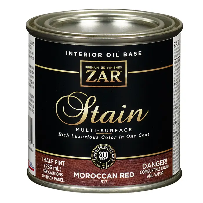 ZAR Interior Oil Base Stain is a versatile, full‐bodied, translucent wiping stain that can be applied to multiple surfaces. ZAR Interior Oil Base Stain wipes on as easily as furniture polish to stain and seal in one quick, easy application. Formulated with ”controlled penetration” for uniform color without unsightly streaks or lap marks, it can be used on previously painted or varnished surfaces‐without stripping‐to achieve a gorgeous effect. ZAR Stain can be used for decorative faux finishing and color toning on non‐porous, non‐wood surfaces. Mix any two colors in a 50/50 blend to create a unique hue or tint ZAR Color Matcher to coordinate with your most treasured belongings.