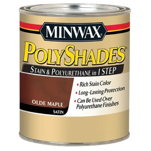 Minwax PolyShades combines stain and polyurethane in one simple step. Each coat provides rich color and lasting protection while enhancing the wood grain. This product will reduce finishing time compared with staining with one product and protecting with another. PolyShades stain and polyurethane also allows you to easily change the color of your currently stained or varnished wood without stripping. Over old varnish you can change the color without removing the old finish or hiding the grain.