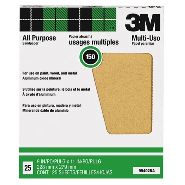 20‐Pack of 9” x 11” 3M 99402 Aluminum Oxide Sanding Sheet, 150‐Grit, 25‐Pack