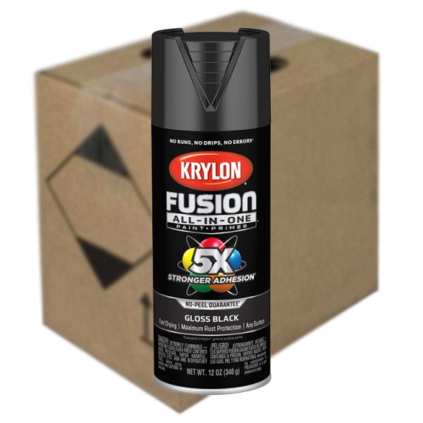 24-Pack of 12 Oz Krylon K02702007 Black Fusion All-In-One Paint & Primer Spray Paint, Gloss