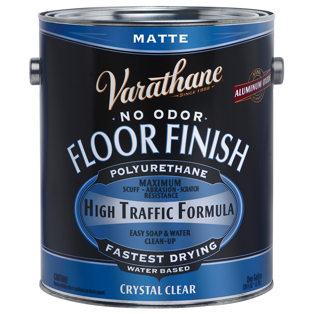 Varathane Water-Based Floor Finish provides the ultimate protection for your wood floors while providing a crystal clear finish. It is formulated with Aluminum Oxide Nano Technology to provide excellent scuff and scratch protection. It is ideal for high traffic areas, and stands up to years of abuse. From children’s toys to pet scratches, Varathane Water-Based Floor Finish gives you better protection for your wood floors, while providing a low-odor solution that dries quickly and cleans up easily with soap and water.