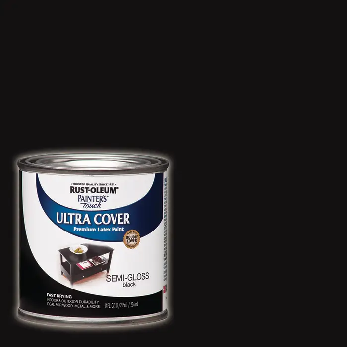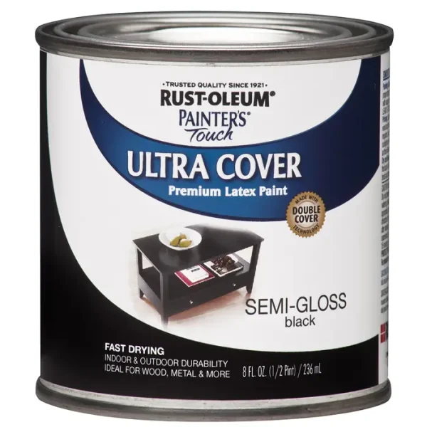 2‐Pack of 1/2 Pt Rust‐Oleum 1974730 Painter’s Touch 2X Black Ultra Cover Premium Latex Paint, Semi‐Gloss