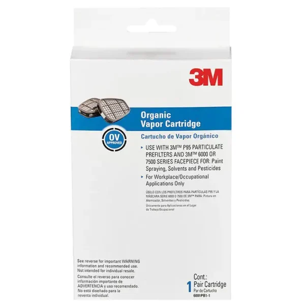 Contains 2 pair of replacement 6001 organic vapor cartridges for 3M 6000 series and 7500 series respirators. 3M Performance Cartridge for organic vapor is designed to bring pros a quick and easy replacement solution when you’re working with spray paints, solvents and more. When it is time to change your cartridge consider picking up 3M 6001 Organic Vapor Performance Cartridges.