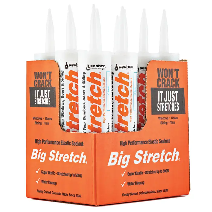 Homes move. Window frames move away from the siding or doors shift against the brick. This movement happens as the home settles as well as with temperature changes and even wind. If movement causes a sealant to crack, you can lose the air or moisture barrier in your home. That’s why you need Big Stretch. With powerful adhesion and extreme elasticity, it will stick, twist, bend, compress, and stretch ‐ 530% maximum stretch ‐ to handle most any movement your home can dish out, all without cracking.