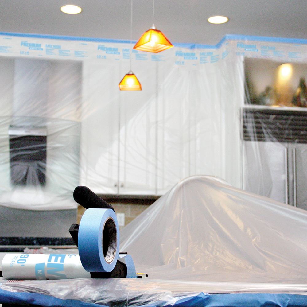 Trimaco’s Easy Mask Premium Masking Film clings to most surfaces and attracts overspray. This premium film is treated with a unique formula that also reduces flaking to allow for multiple uses. To use, simply unroll the masking film and place on surface that needs protecting. For additional security, reinforce with blue painter’s tape to keep in place. Great for use with Trimaco’s Film Applicators.