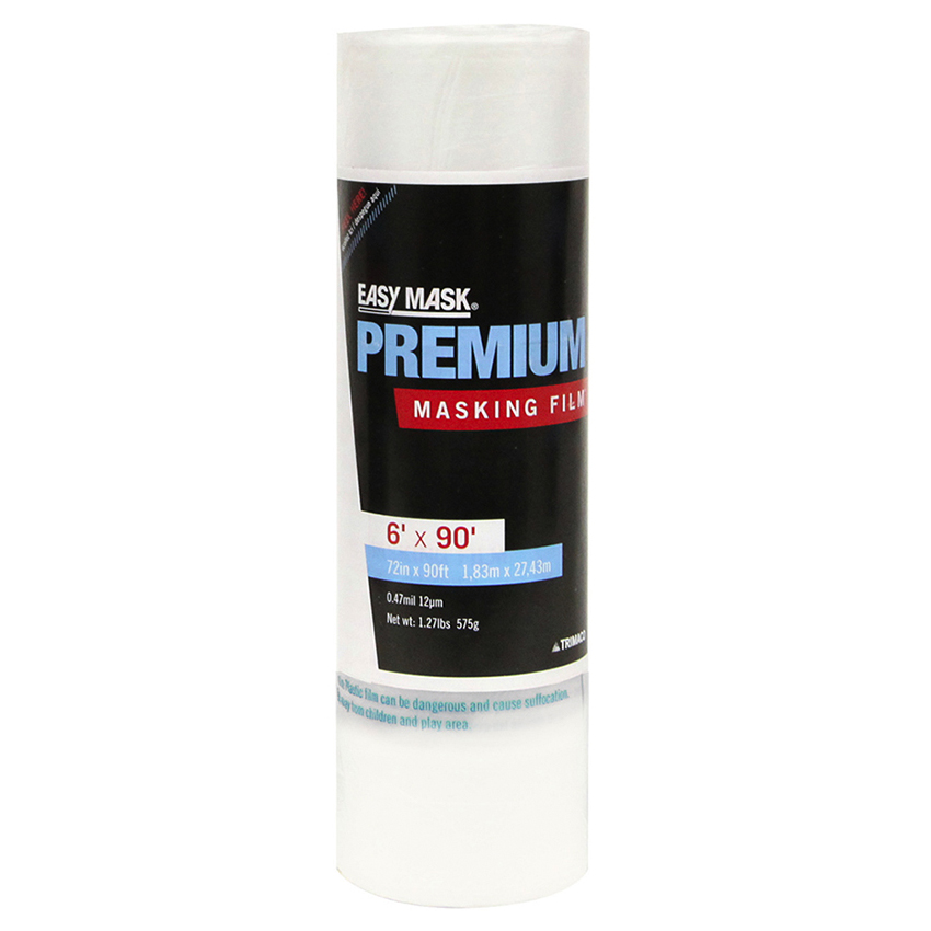 Trimaco’s Easy Mask Premium Masking Film clings to most surfaces and attracts overspray. This premium film is treated with a unique formula that also reduces flaking to allow for multiple uses. To use, simply unroll the masking film and place on surface that needs protecting. For additional security, reinforce with blue painter’s tape to keep in place. Great for use with Trimaco’s Film Applicators.