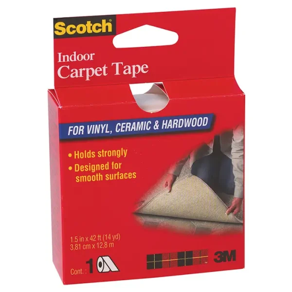 The Scotch Indoor Carpet Tape is long lasting and is intended for permanent use. It stays in place, even in high-traffic areas and is available in a variety of lengths and widths to suit many projects. Indoor carpet tape recommended for use on vinyl, ceramic and hardwood floors. Not for outdoor use or securing rugs to carpet.