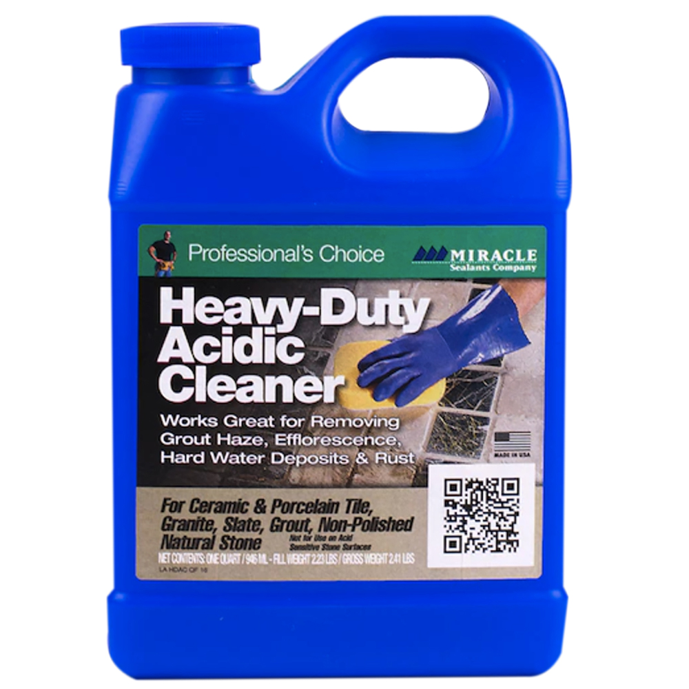Heavy-Duty Acidic Cleaner is a fast-acting, heavy duty acid cleaner for textured, non-polished, natural and manufactured surfaces. Heavy-Duty Acidic Cleaner removes sanded grout and mortar residue, joint cement, lime and hard water deposits, efflorescence, rust and other heavy dirt and grime. Approximately 200 – 4,000 sq. ft. per gallon with standard dilution.
