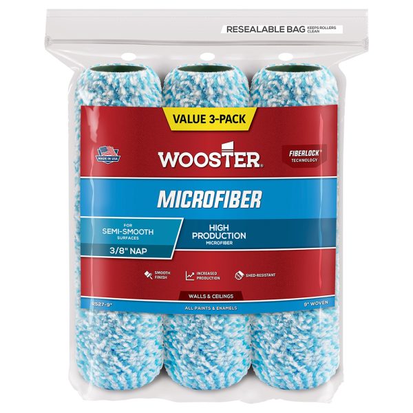 Wooster Microfiber is made with blue-striped FiberLock fabric. Superior to standard microfiber, its advanced technology backing locks fibers in, nearly eliminating lint while delivering a finer finish. Releasing more paint than before, it provides better productivity by increasing coverage. For microfiber with smoother finishes and more production, Wooster gives you better results with less effort.