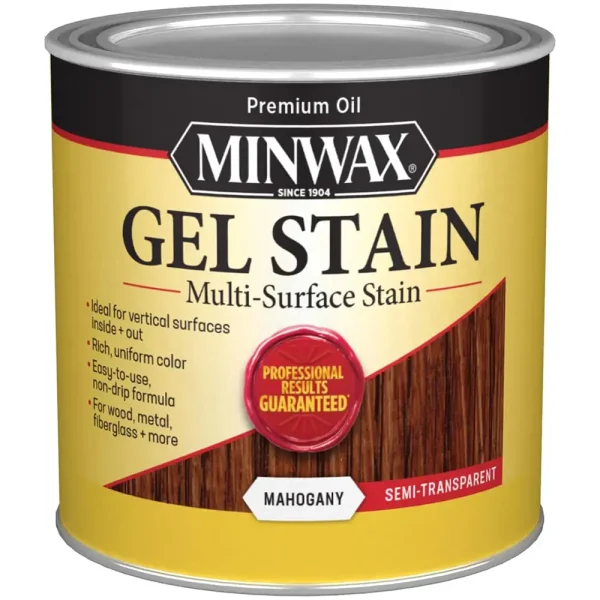 Minwax Gel Stain is a non‐drip stain that adds natural colors and accentuates the beauty of a wide range of wood and non‐wood surfaces including wood, plywood, veneer, fiberglass, metal and molded fiberboard.