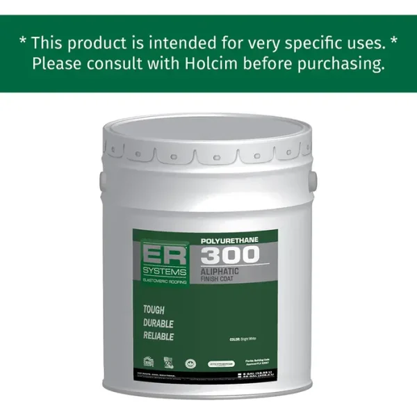 ERSystems Polyurethane 300 Aliphatic Finish Coat is a single component, aliphatic, moisture‐cure, polyurethane coating. Polyurethane 300 Aliphatic Finish Coat was developed to provide the highest possible combination of flexibility, elongation, gloss and color retention, as well as excellent weathering and UV screening capabilities. In combination with substrate primers and Polyurethane 300 Aromatic Base Coat it produces a continuous, seamless, waterproof coating system.