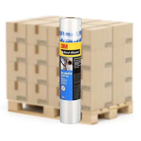 3M Hand-Masker Pre-Folded Masking Film is pre-folded polyethylene film used for surface protection and dust containment during for multi-coat paint, lacquers and industrial coating applications. The film is treated to resist overspray flaking during multiple coat applications. This translucent film allows significant light transmission and static cling for easy handling during windy conditions or when using spray equipment. Available in a variety of sizes, 3M Hand-Masker Pre-Folded Masking Film is designed for use with 3M Hand-Masker dispensers and with Scotch Masking and Scotch-Blue Painter’s Tapes. 99 Inch W x 90 ft L x 0.4 mil T.
