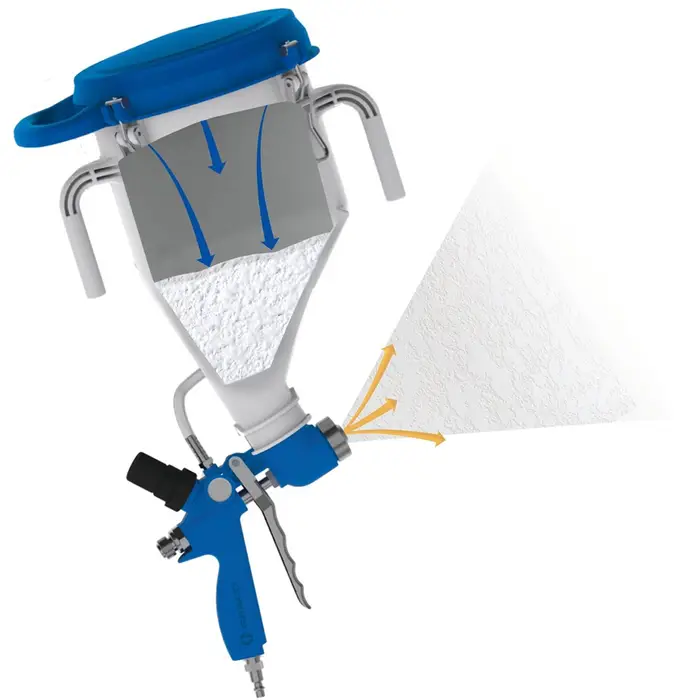 Finish smaller texture jobs fast with less fatigue. The portable TexSpray FastFinish Pro System maximizes material and airflow with a high‐output, continuous flow air compressor and pressurized spray gun to deliver exceptional texture finishes up 6X FASTER than traditional gravity‐feed hoppers. Small and portable, FastFinish maximizes material and air flow with a high‐output, continuous flow air compressor and pressurized spray gun, making it the ideal solution for smaller texture jobs.