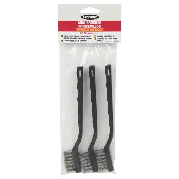 Hyde Tools 46650 Hyde Stainless Steel Bristle Mini Brushes, 3-Pack