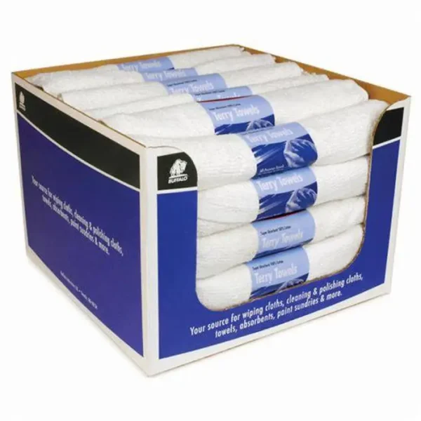 Pallet (1080 ct) of 14″ x 17″ Buffalo 60229C White Terry Towels All-Purpose Terry Cloth Towels, 3 Per Pack