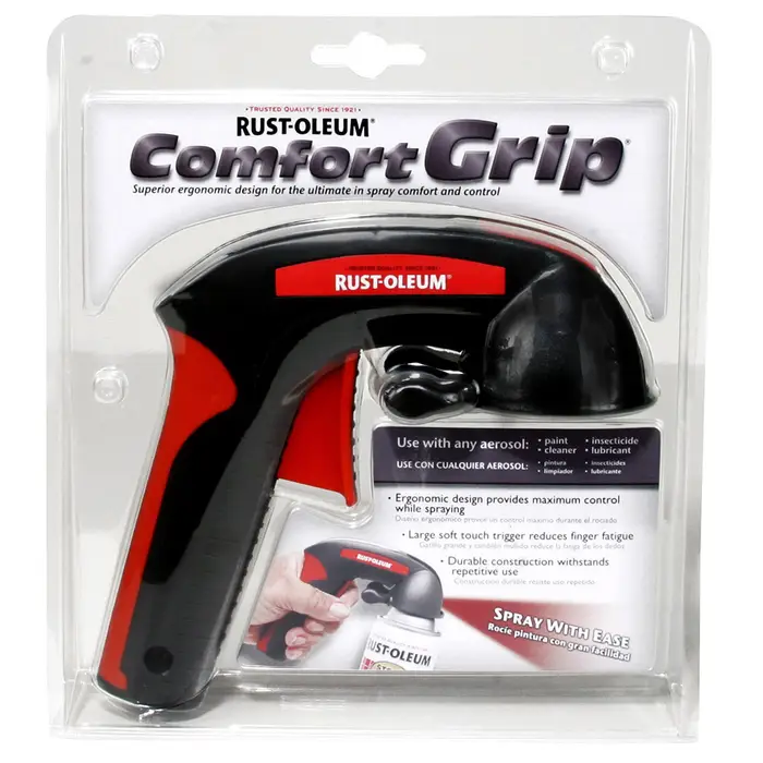 Rust‐Oleum Comfort Grip enables more control for a smooth, professional finish. Includes a 2‐finger trigger to minimize fatigue. Safety lock prevents paint from spraying unexpectedly.